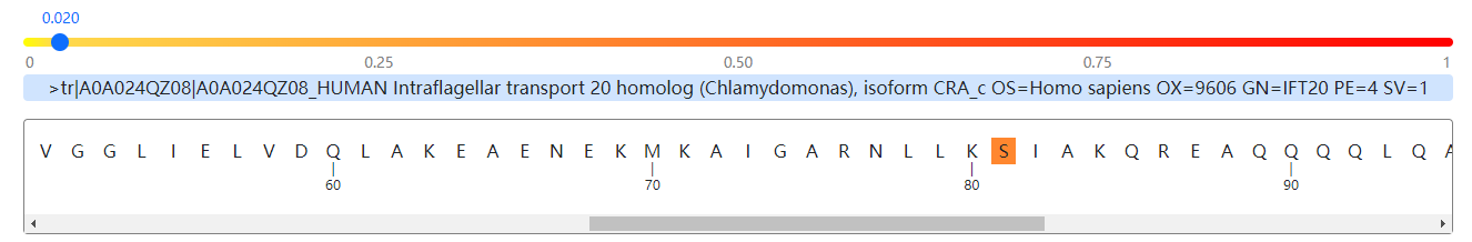 Threshold value: The user can manually adjust the threshold size. If the site predicted functional score is greater than the threshold value, the function is considered to be present and is displayed in orange on the protein sequence.