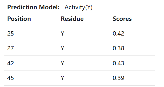 The website can be used for phosphosite general function as well as specific function prediction (e.g. Activity and Molecular association), distinguishing between residue types. Users can click on the drop down box to select as required. If Activity (ST) is selected, it is used to predict the probability that a phosphosite with residue type S or T in the protein would have activity function.
