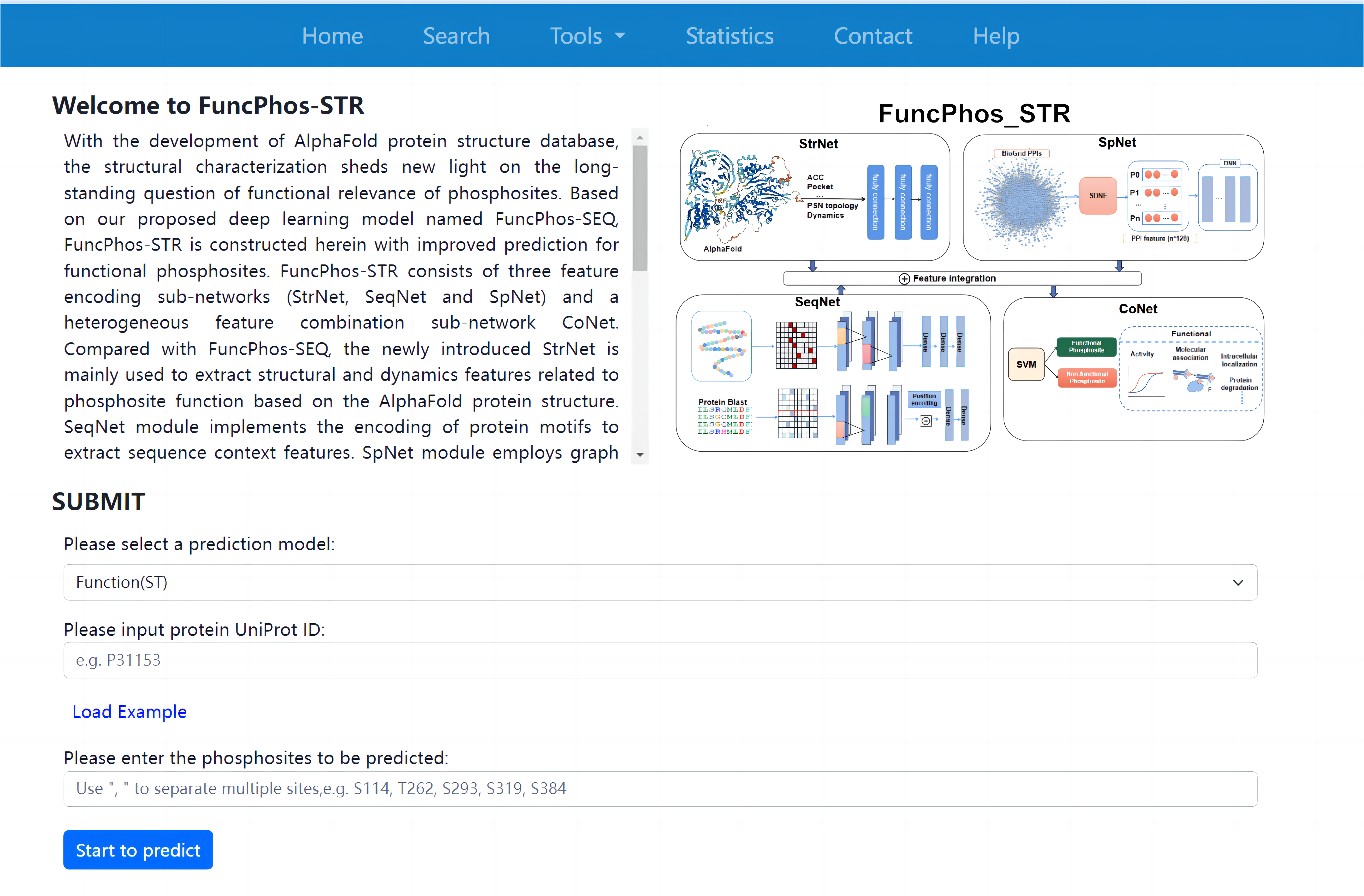 Click on Tools, FuncPhos-STR in order to enter the function prediction page.