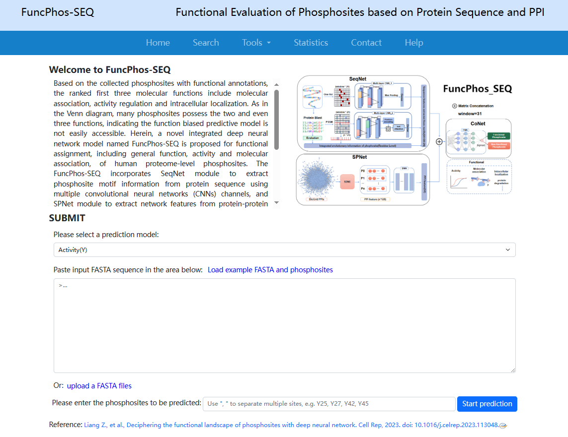 Click on Tools, FuncPhos-SEQ in order to enter the function prediction page.
